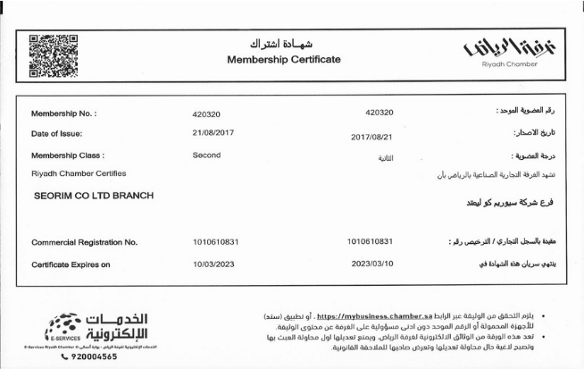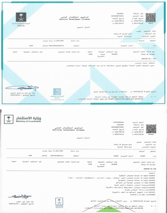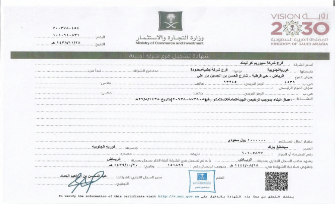 Certificate of Saudi Arabia General Investment Authority (SAGIA)